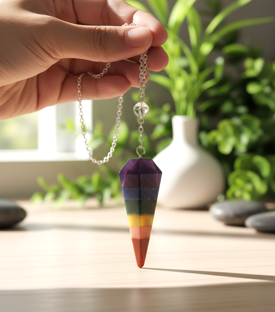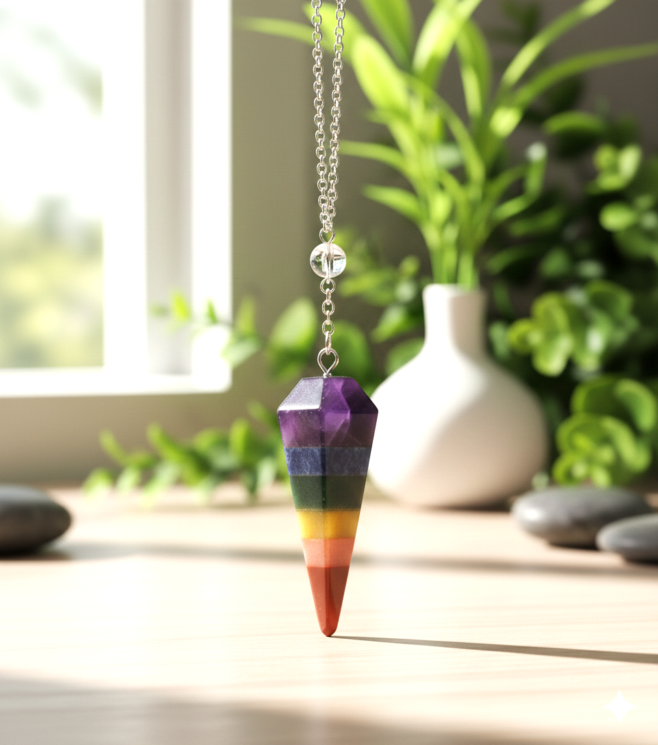 🔮 Specifications: Natural, multi-gemstone | Six Faceted, V Point Pendulum