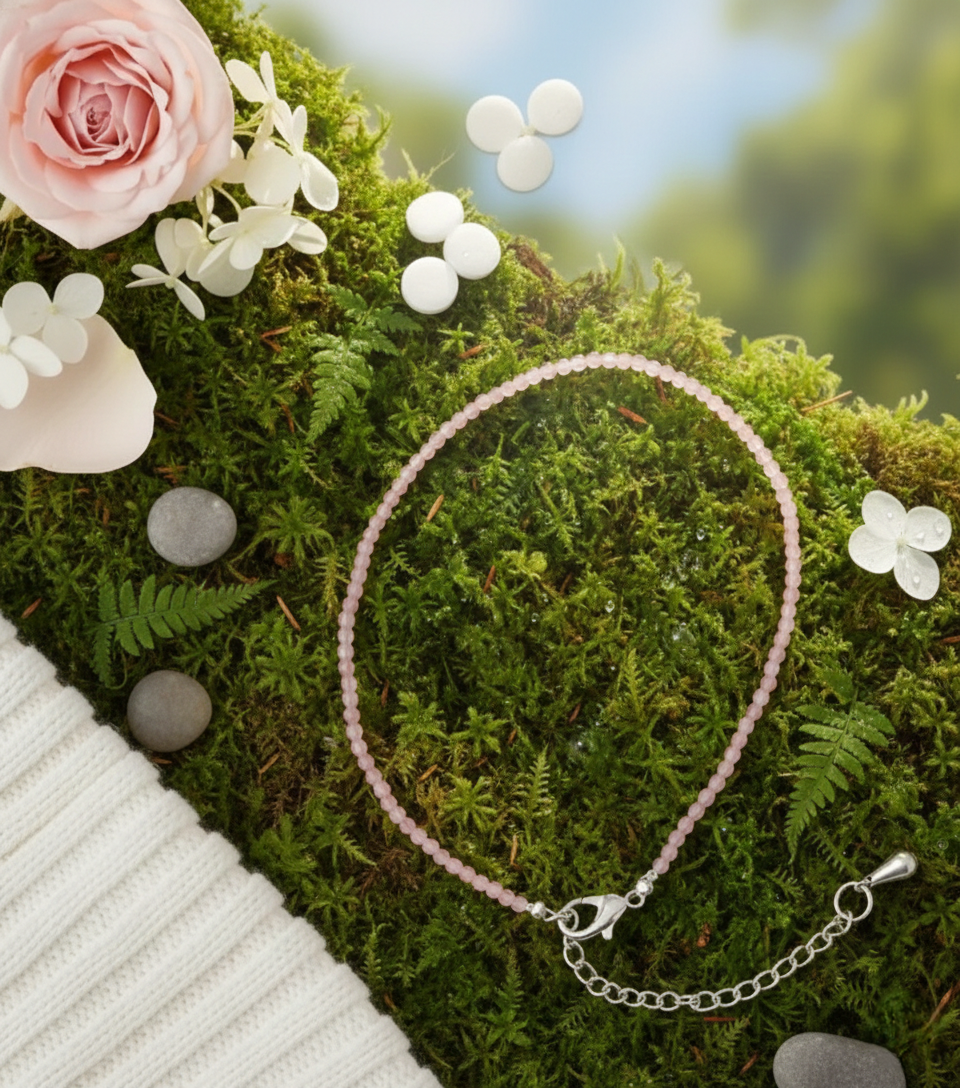 The Rose Quartz Anklet from AdiCrystals is a handcrafted piece infused with the gentle energy of the Stone of Love. Known for its soothing vibrations, Rose Quartz promotes compassion, emotional healing, and harmony. This anklet is more than jewelry—it’s a talisman for love, peace, and inner balance.
